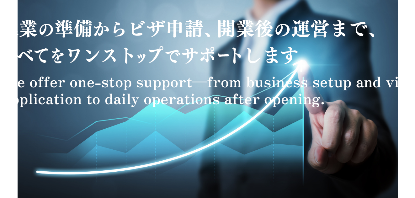 開業の知識がまったくない状態でしたが、会社設立からビザ取得、店舗探しまでトータルでサポートしていただきました。書類の準備や行政手続きもすべて丁寧に教えてくれたので、不安なく始められました。